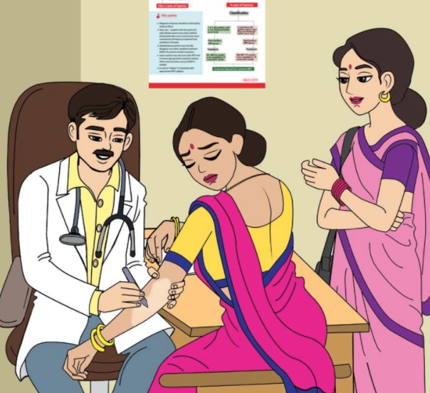 Leprosy has such varied presentations that it is useful for ASHAs like Ritu to have visual aids to help everyone learn to recognize the signs and symptoms of the disease. When everyone knows what to look for, community screenings more reliably result in early detection and treatment. ASHAs also need information leaflets and brochures to demonstrate how persons affected by leprosy should take care of their hands, feet, and eyes, and recognize complications. These materials help persons affected by leprosy and their families to follow through on the continuous care necessary to prevent development of disabilities. Efforts to train and empower ASHAs, who serve as frontline health workers, bring rich dividends in terms of strengthening the health system at the community level.