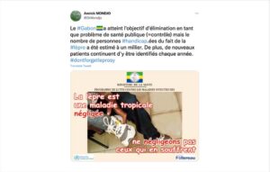 Twitter post by Dr. Annick Mondjo (@DrMondjo), Director of the Infectious Diseases Control Program at Gabon’s Ministry of Health, with the hashtag #dontforgetleprosy.