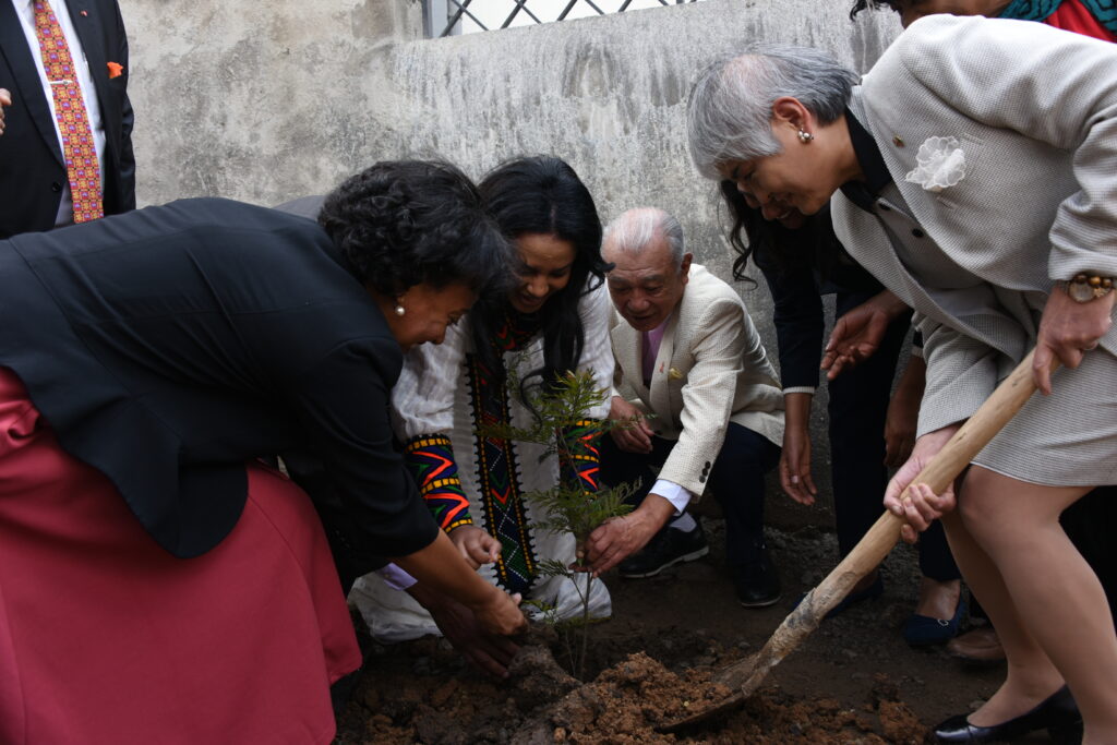 At the opening ceremony for ENAPAL’s new building, the day’s honored guests worked together to plant a commemorative tree. Takako Ito, Ambassador of Japan to Ethiopia, holds the shovel.