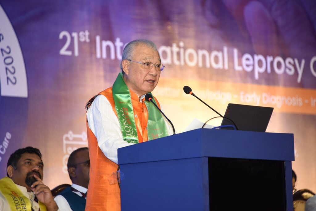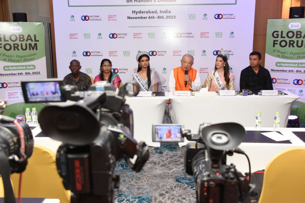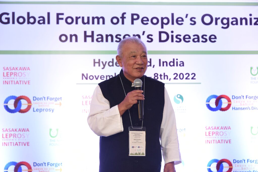 WHO Goodwill Ambassador for Leprosy Elimination Yohei Sasakawa started his first visit to India in about three years in New Delhi at the WHO Regional Office for South-East Asia, which also houses WHO’s Global Leprosy Programme, to meet with Regional Director Dr. Poonam Khetrapal Singh. He then headed south, first stopping in Jharkhand to meet with state authorities and community-based frontline health workers known as ASHAs, and then moving on to Hyderabad in Telangana, the location for the 21st International Leprosy Congress (ILC). In Hyderabad, he participated in the 2nd Global Forum of People’s Organizations on Hansen’s Disease, visited a colony on the outskirts of the city, met with the representatives of endemic countries’ national leprosy programs and other relevant officials, gave the keynote address at the ILC, and held two press conferences. The Goodwill Ambassador was pleased to be resuming an active schedule after years of restrictions because of the COVID-19 pandemic.