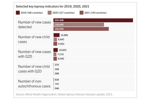 In September 2022, WHO published its annual global leprosy (Hansen’s disease) update. The update presents statistics based on 2021 data reported by 143 countries, including all 23 global priority countries. Read more