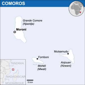 The sovereign state comprises three main islands: Ngazidja, Mwali, and Nzwani, known internationally by their French names as Grande Comore, Mohéli, and Anjouan. Currently, the government is organized as a federal presidential republic, with a president leading Comoros as head of state and government and three governors in charge of the islands. Of the three islands, Anjouan has the highest number of leprosy patients, with a new case detection rate per million population of 530.