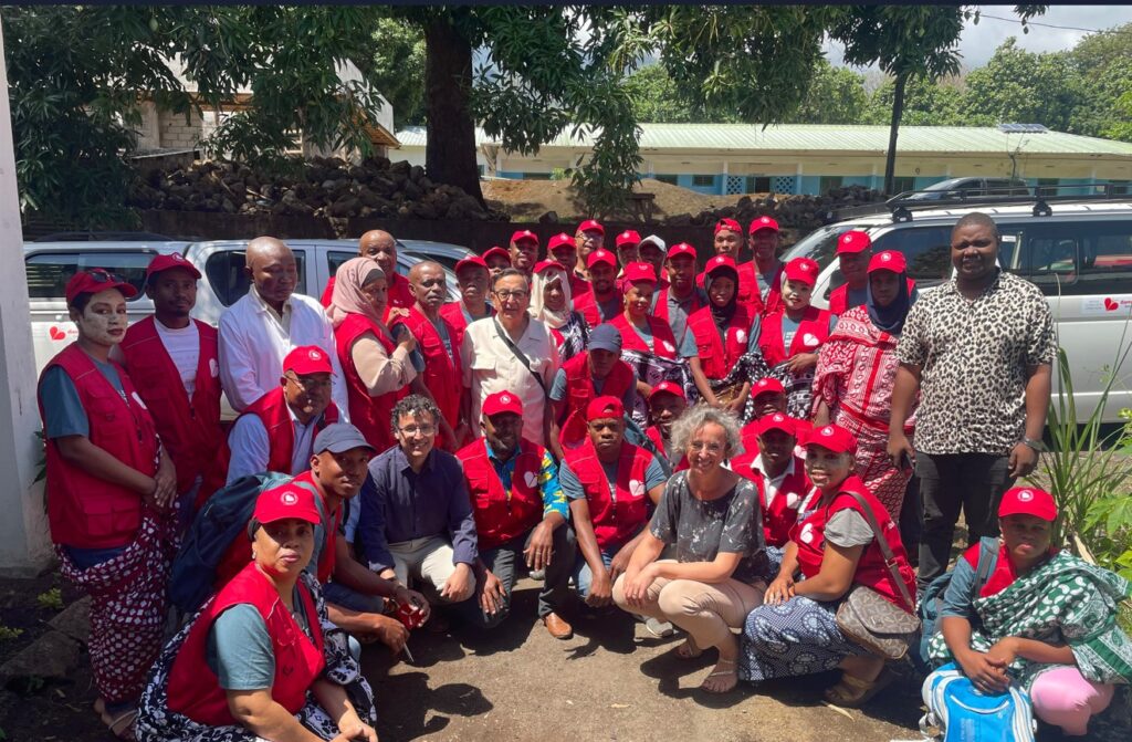 The project launched with a ceremony on March 9. Approximately 150 people attended the event, including Dr. Nimer Ortuño-Gutiérrez, Medical Advisor, Damien Foundation; Dr. Younoussa Ansoumani, Comoros Branch Representative of the Damien Foundation; and the honorable guests of Dr. Zaidou Youssef, Governor of Anjouan; Dr. Aboubacar Said Anli, Secretary General of the Ministry of Health; Dr. Aboubacar Mzembaba, National Coordinator for Leprosy and Tuberculosis; Dr. Diarra Abdoulaye, WHO Representative for Comoros; village chiefs; and medical personnel. Goodwill Ambassador Sasakawa sent a video message in which he expressed his respect and gratitude for the dedication of the Damien Foundation and the Ministry of Health along with his wish for Anjouan to become a model case showing that zero leprosy can be achieved. He is counting on the dedication of the people involved in the project and the commitment of Anjouan’s leaders to bring the benefits of early detection and treatment to as many infected persons as possible.