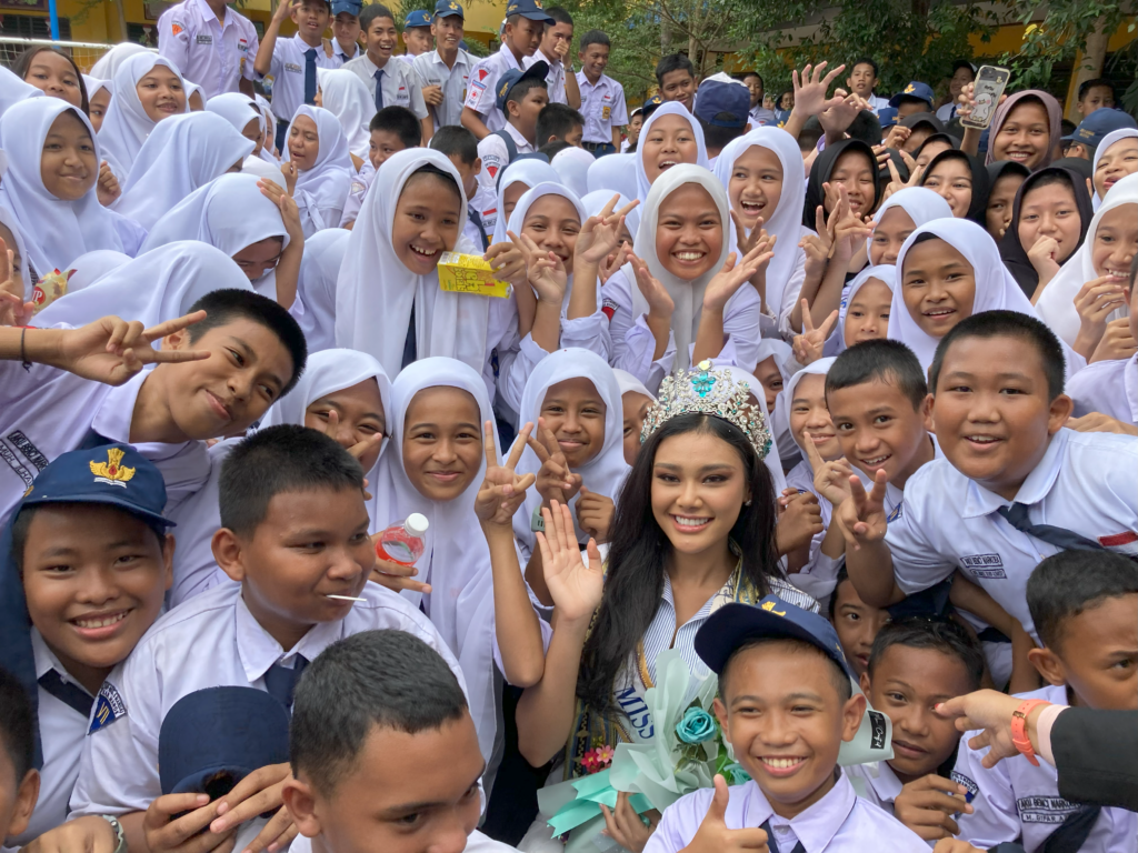 On August 26, Miss Supranational visited Jongaya Leprosy Settlement in the provincial capital, Makassar. There she met with the head of the city’s health department, provincial and municipal officials, settlement residents, PerMaTa members, and other stakeholders at the local community hall. She shared her experience of being inspired by Princess Diana’s compassion for leprosy patients and expressed her commitment to becoming a driving force for changing perceptions of leprosy. She also pledged to help ensure that no one suffering from the disease is left untreated, help prevent disability due to leprosy, and work toward elimination of the stigma associated with the disease.