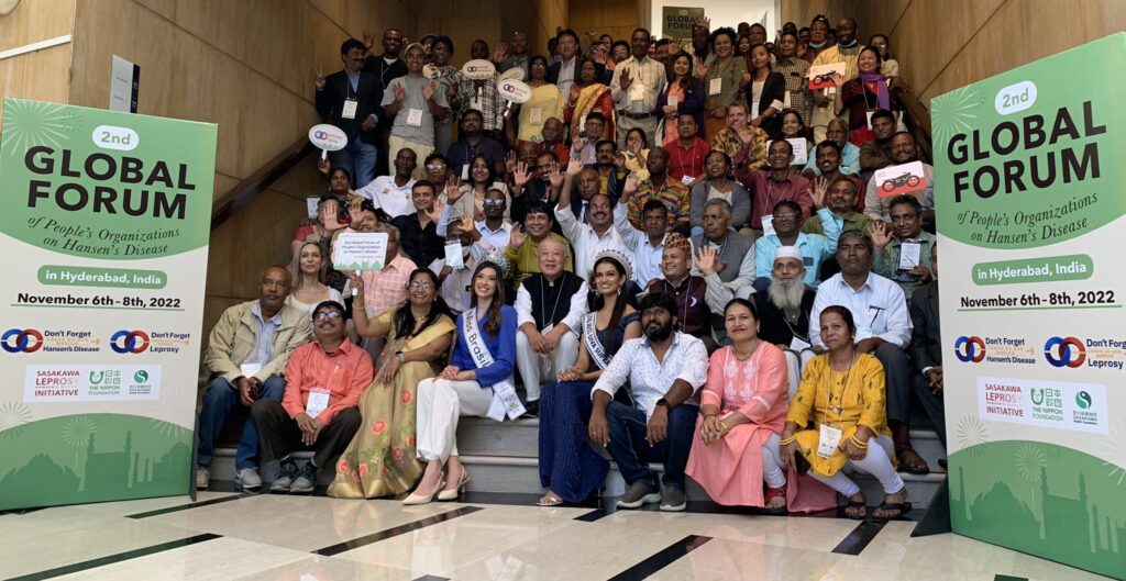 Hyderabad, 8th November: The 2nd Global Forum of People’s Organizations on Leprosy, also known as Hansen’s Disease, was organized in Hyderabad, India from November 6 to November 8. Around 100 representatives of 20 People’s Organizations from 21 countries took part. The theme of the forum was “Strengthening and maximizing the roles and capacities of People’s Organizations to promote the dignity of persons affected by Hansen’s disease.” Miss World Brazil, Ms Letícia Cezar da Frota and Miss Supranational India, Ms Pragnya Ayyagari attended the three days event. WHO Goodwill Ambassador for Leprosy Elimination, Mr Yohei Sasakawa, who together with The Nippon Foundation and Sasakawa Health Foundation has made up the strategic alliance known as the Sasakawa Leprosy (Hansen’s Disease) Initiative, also attended the event. The three days residential event witnessed the sessions on capacity building of People’s Organizations, inclusion, and partnerships. The forum was organized by Sasakawa Leprosy (Hansen’s Disease) Initiative as part of its “Don’t Forget Leprosy” campaign launched during the COVID-19 pandemic.