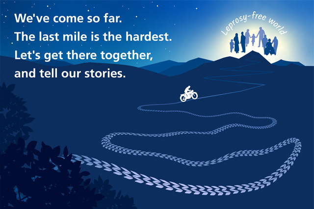 In the Initiative’s vision, this motorcycle is heading toward a leprosy-free world where there is zero disease, zero disability, and zero stigma and discrimination—a world where even if the bacteria that cause leprosy still exist, there is no fear.